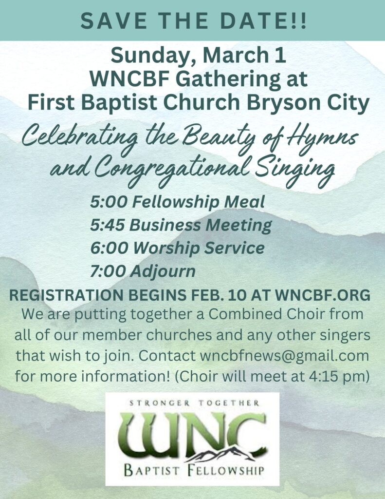 The Western North Carolina Baptist Fellowship is exactly that….a fellowship of Baptists in WNC. We believe "We are stronger together!" and our mission and vision are formed with this in mind. We are here to be a source of encouragement and support, and to do as Christ calls us as a fellowship of believers.